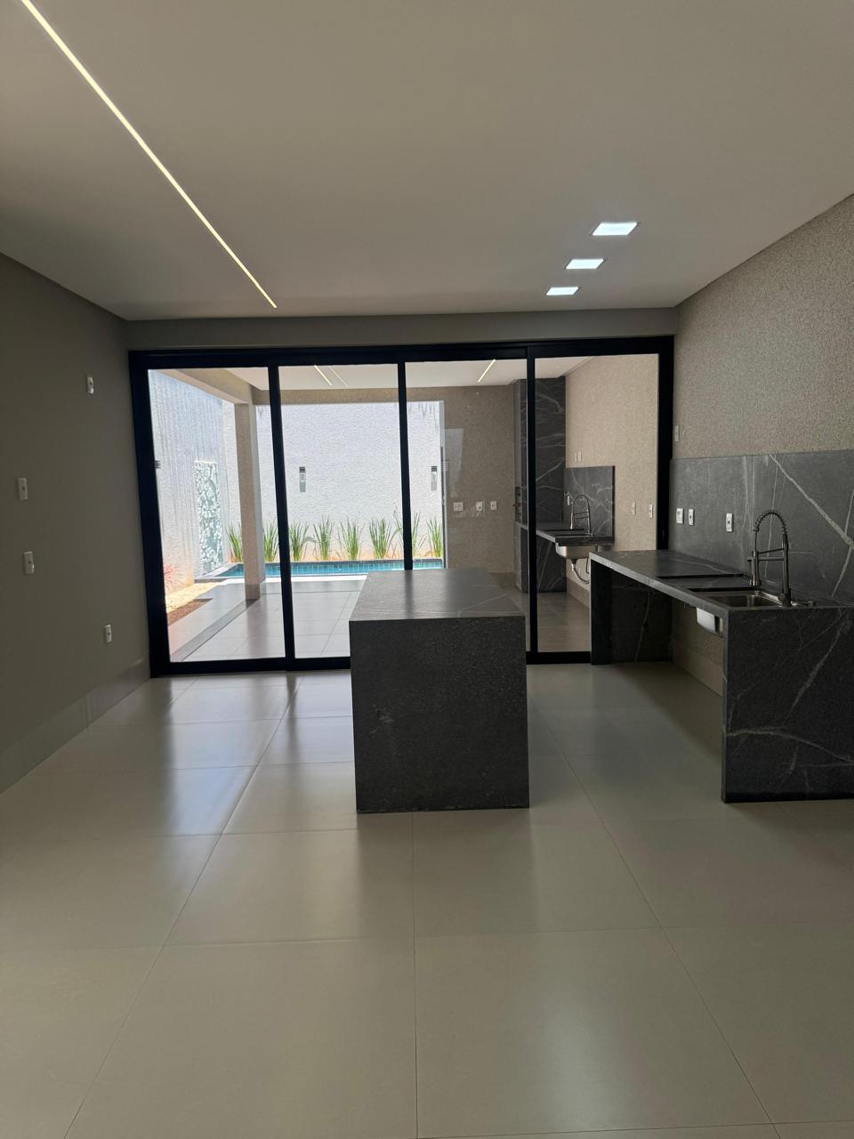 Sala de TV/estar, sala de jantar, e cozinha/ área gourmet com churrasqueira, tudo integrado