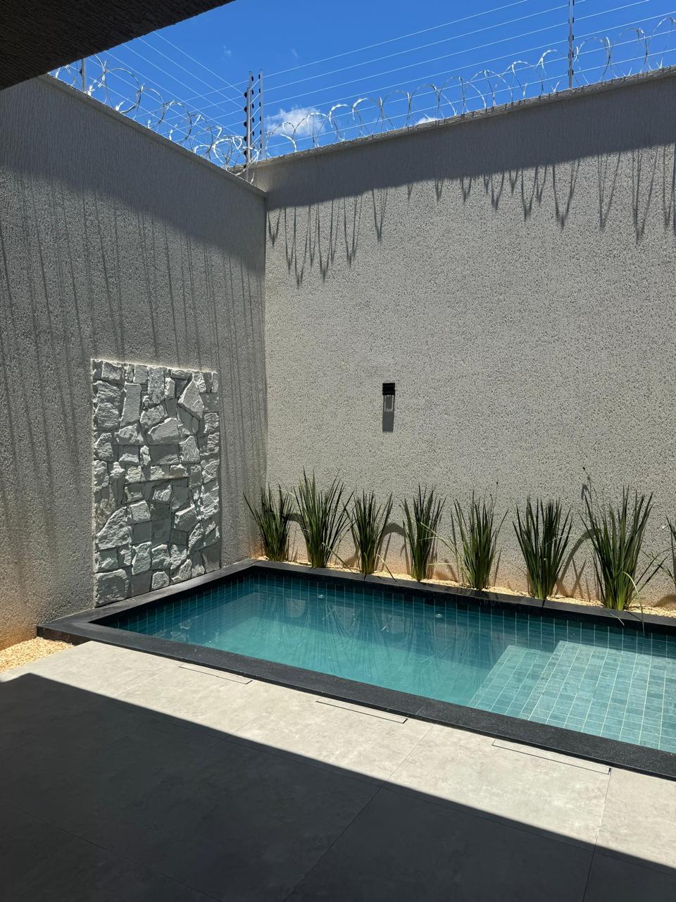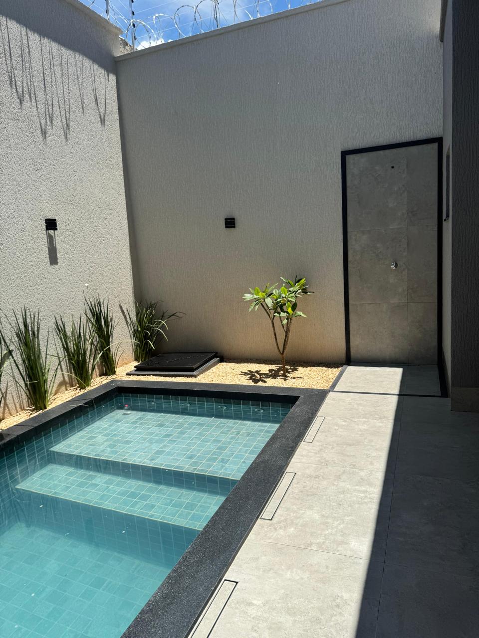 Piscina revestida com pastilhas, iluminação, preparada pra receber hidromassagem e aquecimento