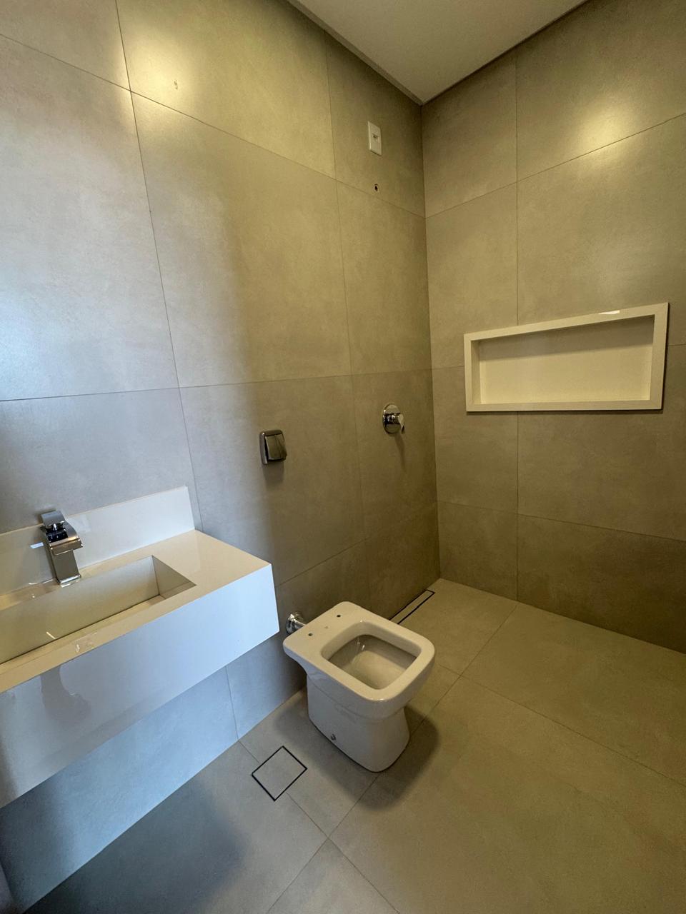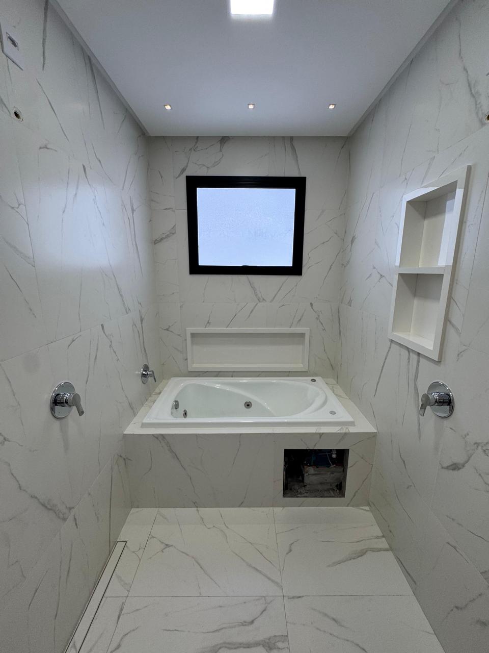 3 suítes plenas, sendo a suite do casal com banheira de hidromassagem, bancada dupla e previsão para dois chuveiros; Mini copa.